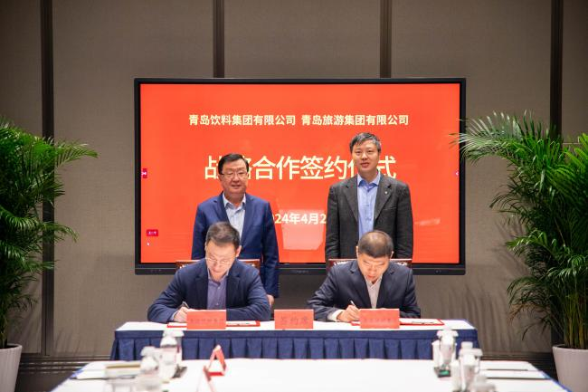 2024年4月2日,青島飲料集團有限公司與青島旅游集團有限公司在青島國際會議中心舉行戰略合作簽約儀式。青島飲料集團總經理劉富華與青島旅游集團總經理譚鵬代表雙方簽署協議。